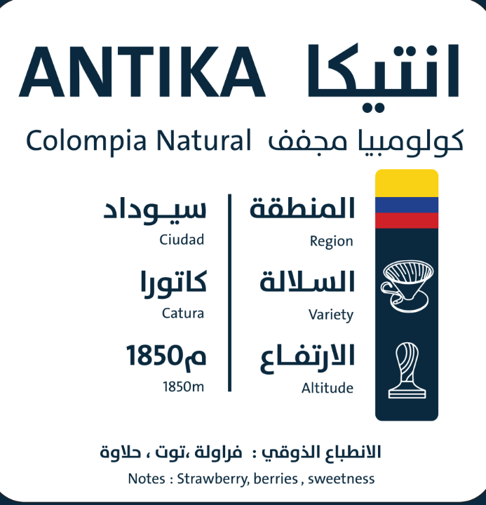 يأتيكم هذا المحصول الفاخر من منطقة أنتيوكيا سيوداد في كولومبيا ، تحديداً من مزرعتي فينكا فيلا لوز و مزرعة فينكا لوس ألب والتي يبلغ ارتفاعها عن سطح البحر قرابة 1850م ،محصول انتيكا من فصيلة كاتورا تمت معالجته بالطريقة المجففة ويتميز بقوام ممتلئ غني وإيحاءات التوت والفراولة والحلاوة العالية
