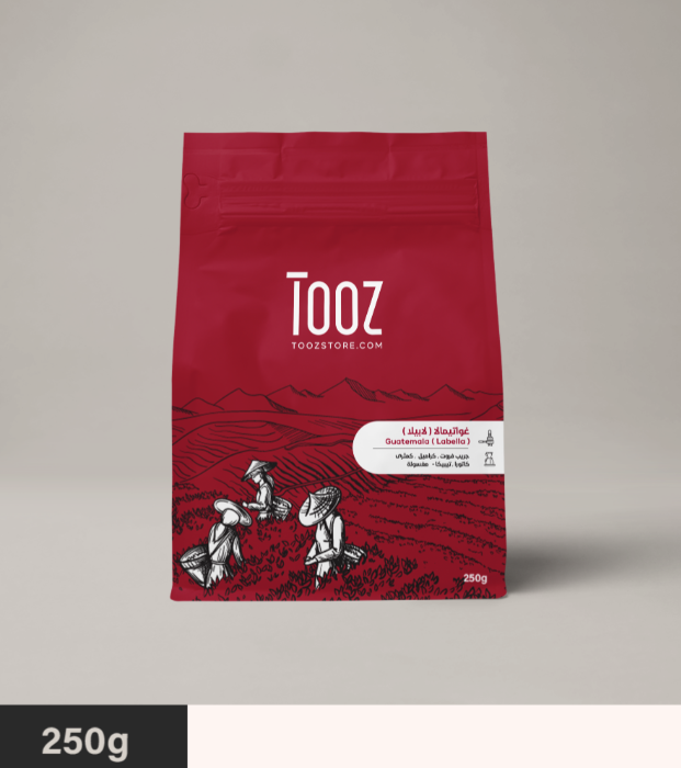 محصول غواتيمالي لابيلا الفاخر، معالجته مغسولة.السلالة: كاتورا تيبيكا - غواتيمالاالمعالجة: مغسولة.الايحاءات: جريب فروت, كراميل, كمثرى.مناسبة للإسبريسو والتقطير